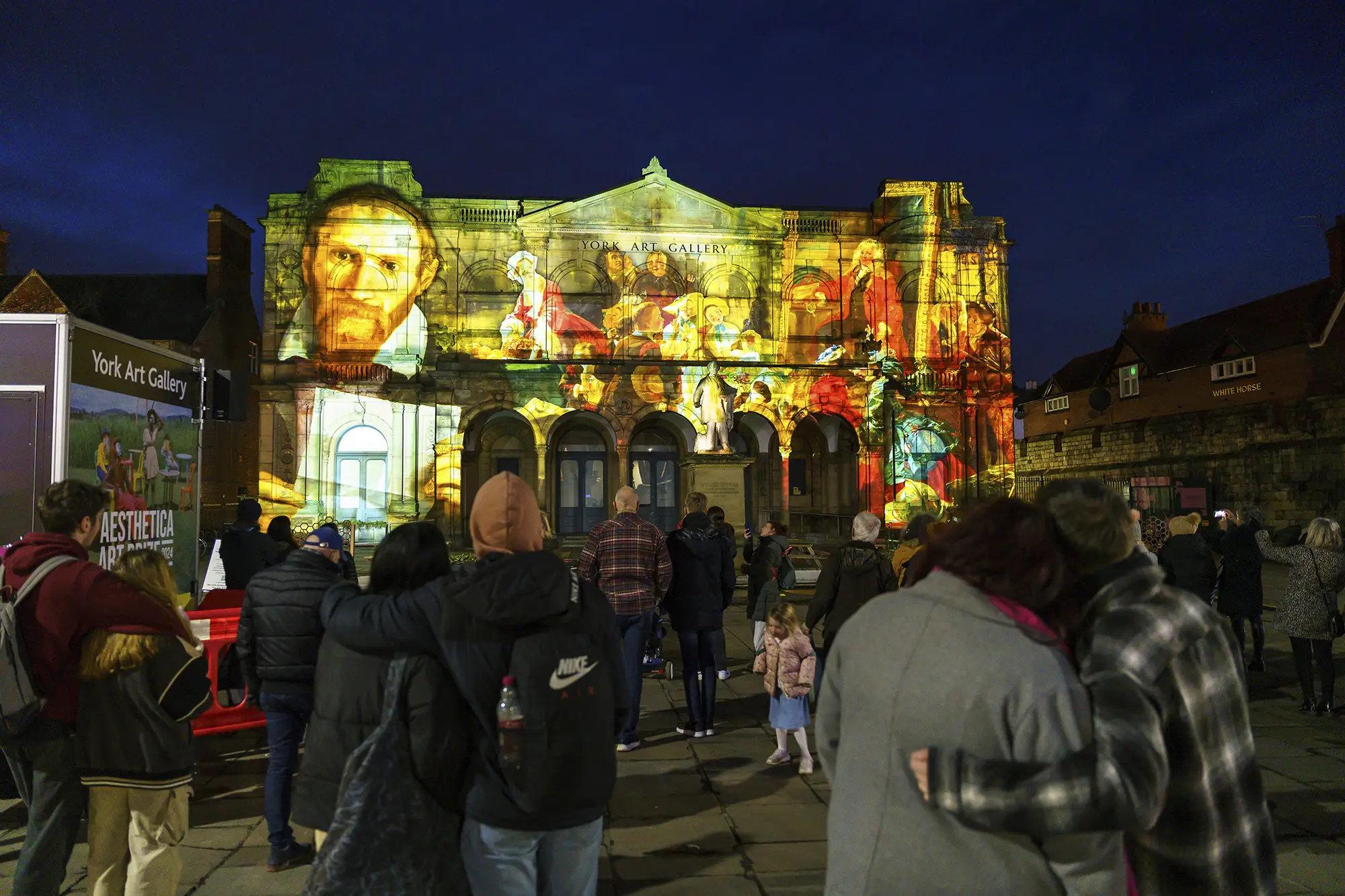 Using the York Art Gallery and the iconic William Etty statue as its canvas, this year’s presentation celebrated York’s rich artistic legacy by featuring six masterpieces from the gallery’s collection. Highlighting diverse mediums found within the gallery, including renowned paintings by William Etty, a pivotal figure in York’s art history, the display paid homage to the city’s vibrant artistic tapestry. The result was a captivating blend of colour and dynamic animations that enveloped the Art Gallery, immersing spectators in a spellbinding visual experience.