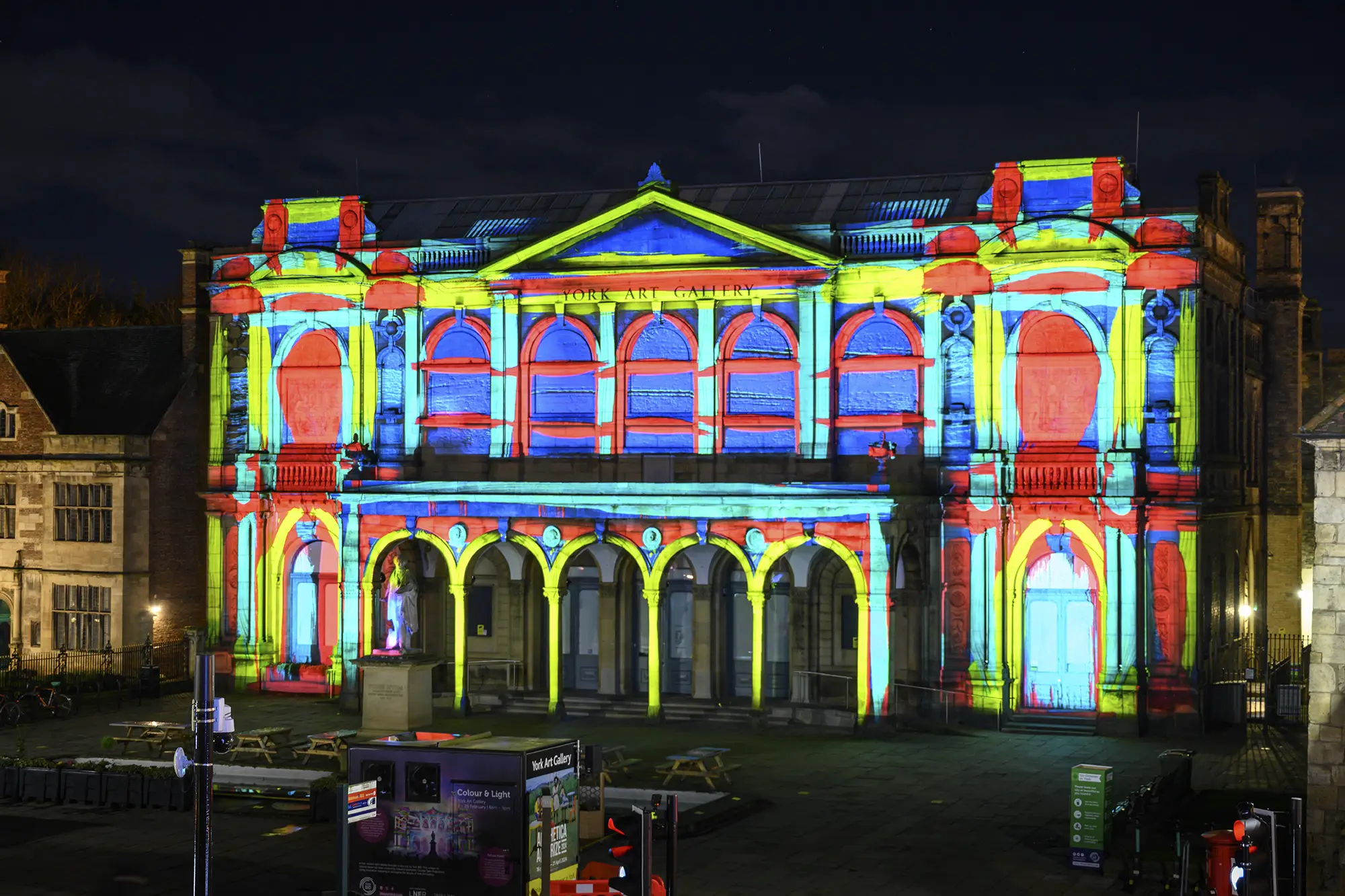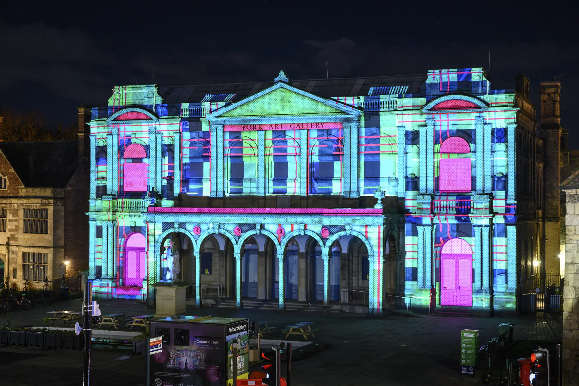From February 7th to the 25th of 2024, Colour & Light illuminated the streets of the city, offering a radiant spectacle to defy the dreary winter months. This transformative project painted the York Art Museum with vibrant hues, captivating the imaginations of both visitors and residents. With a staggering audience of over 35,000, the show left an indelible mark on those who witnessed its enchanting display.